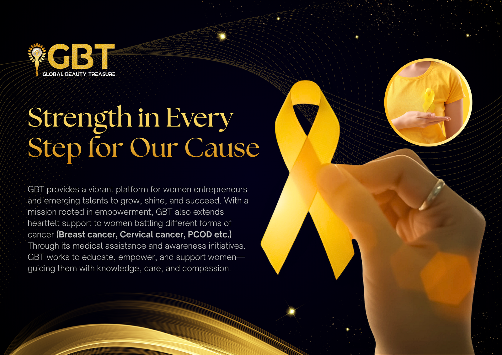 This season supports women battling Breast Cancer, Cervical Cancer & PCOD, promoting awareness, care, and empowerment through GBT initiatives.
